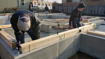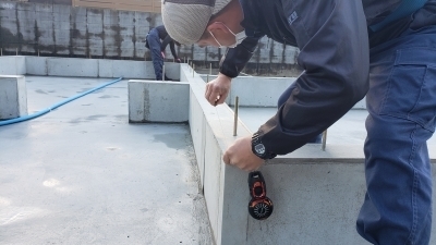 最初に基礎天端に墨付けを行います。