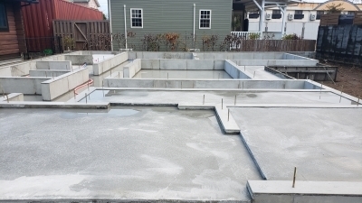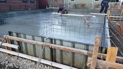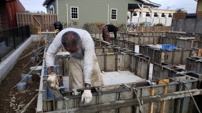 底盤のコンクリート打設後は二度目のコンクリート工事。