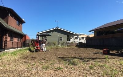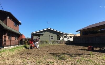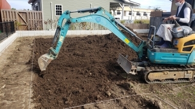 地盤調査後、整地・先行ブロックなどの下準備を終えた「Green room」
