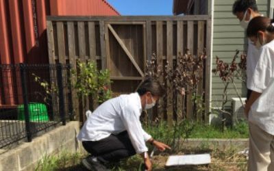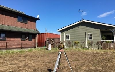 敷地内の調査をおえると、隣地や道路との高低差を確認しすべての調査が終了しました。
