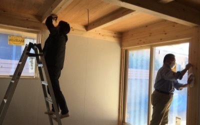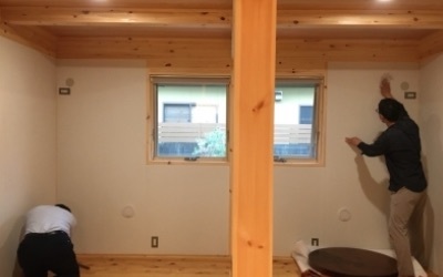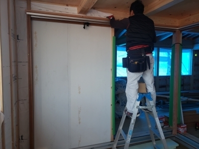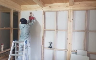 内部では壁の仕上げ施工へと進みました。