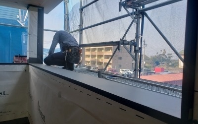 ブルーシートで覆われた養生も剥がれ「Green room」の全てのサッシが納まりました。 光の有難さと外の景観が身に沁みます。。。