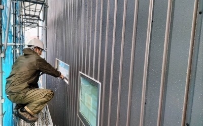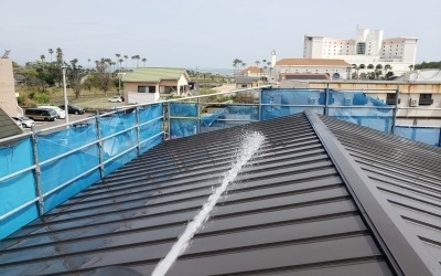 ガルバ施工後は外部シーリング・軒天塗装を終え屋根・壁の洗浄を行います。