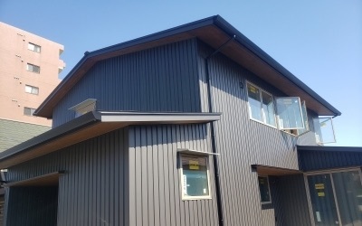 仕上げ材には長尺のガルバリム鋼板を仕様。