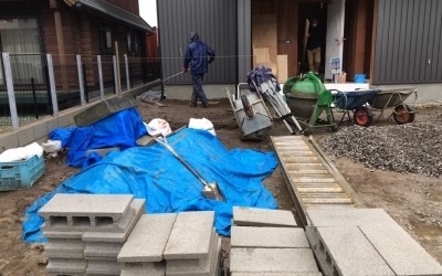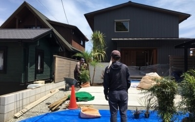 足場が外され外構工事へと入る現場。