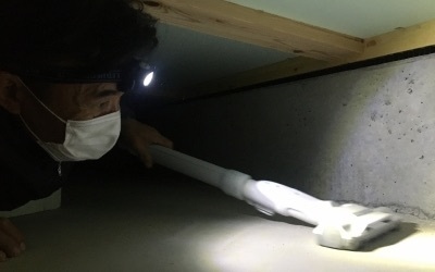 最後は現場責任者のKさん自ら床下へ・・・