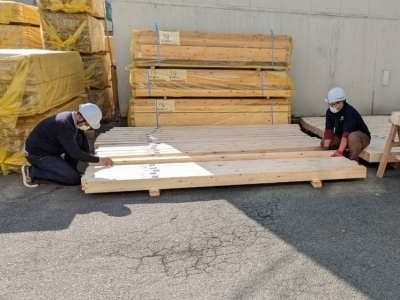 次の工程に向け、柱や梁の番付に行ってまいりました。