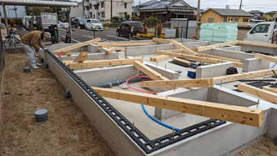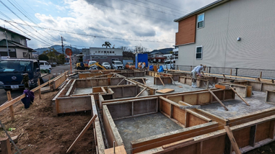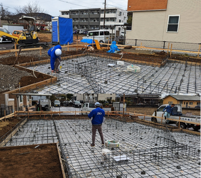 地盤調査を終えたDrops of the sun の現場は、基礎工事の工程へと進みます。