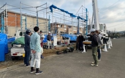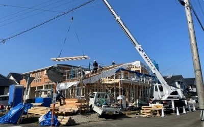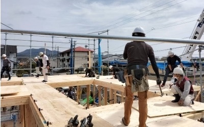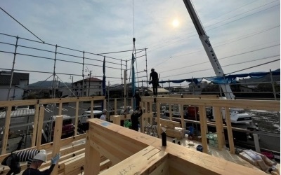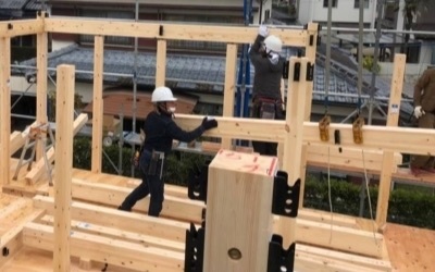 地震に強い構造躯体が、熟練の職人さんたちの手によって、正確かつ丁寧に組み上げられていきます。
