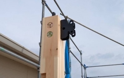 Projectコーディネーターの監督のもと、クレーンオペレーターさんと職人さんとの『阿吽の呼吸』で、番付をおえた木材が所定の位置に配置されます。