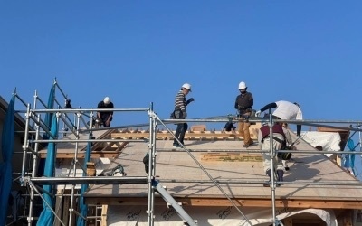 屋根工事・耐力面材の施工を終えると、第三者機関による構造体検査を受けます。