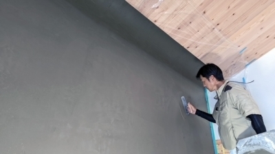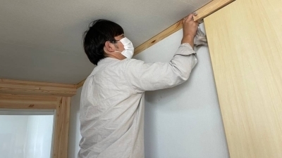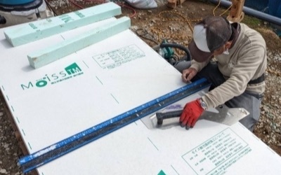 一枚一枚のモイスをM棟梁が丁寧に施工していきます。