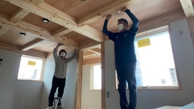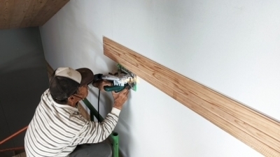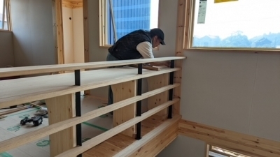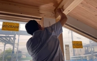 木製サッシの取り付けが終わると内部の大工工事が始まります。