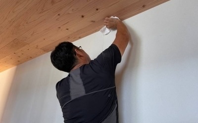 目の前の柱や梁を、一本一本丁寧に磨いていきます。