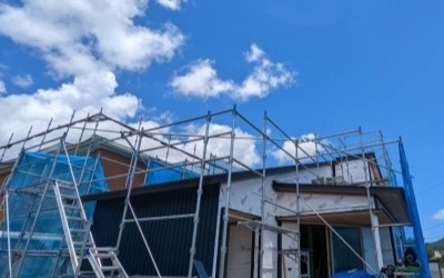 天候に恵まれた3月建築吉日、Drops of the sunの建て方工事が行われました。