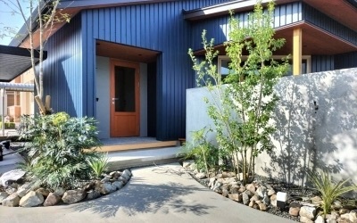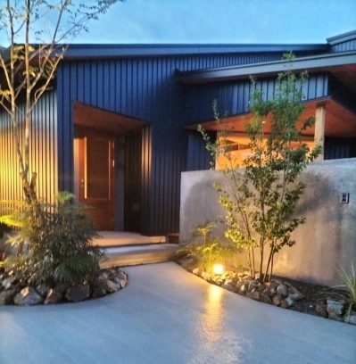 住まい手さんやお客様をお迎えする玄関アプローチ。