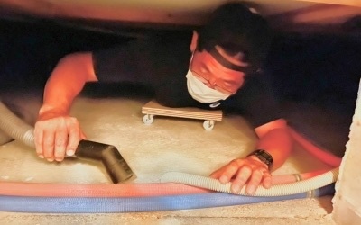 普段は見ることがない床下をチリ一つ・ゴミ一つ残さない精神で掃除機をかけていきます。