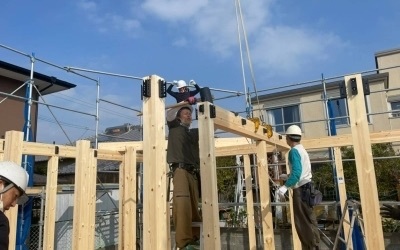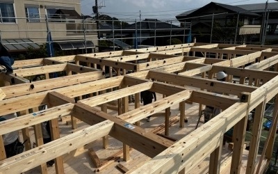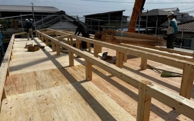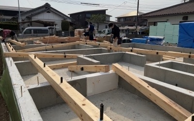 強固な基礎が完成し、現場にはいよいよ大工さんの登場です!