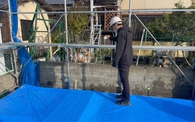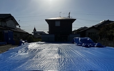 養生シートのはり方にもH棟梁の職人気質を感じます。