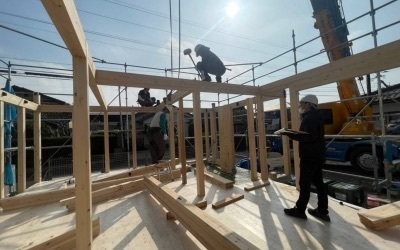 2022年3月建築吉日、S leafの建て方工事が行われました。