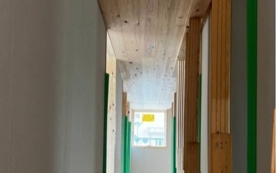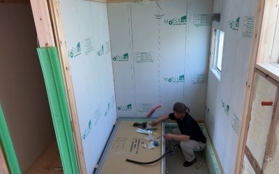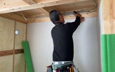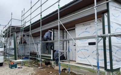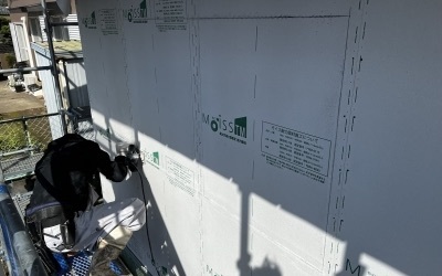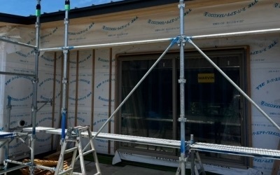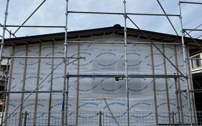 軒天井張り後は、外壁の下地材を取付ていきます。
