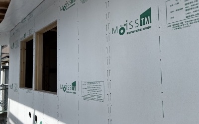 全体を覆うことで外部からの衝撃を分散させる耐力面材「モイスTM」。 地震に強いだけではなく、防火性能にも優れ、調湿効果により湿気にも強く 結露防止にも効果を発揮します。