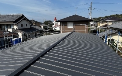 高い遮熱性や耐食性も持った屋根材で、瓦屋根と比較すると重量が非常に軽いため、 お家の重心が下がり耐震性が向上します。