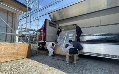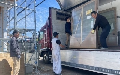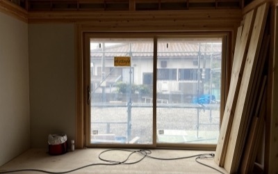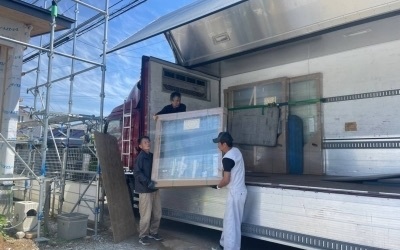 LDKに設置する大型の木製サッシを搬入するときが一番緊張します💦