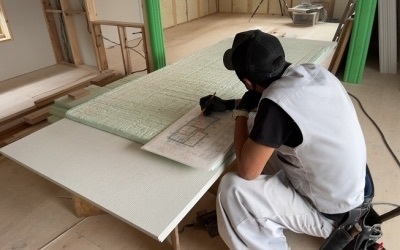 きれいな碁盤の目ですね(^^) この後、断熱材や構造用の合板を敷き込んで、しっかりと養生。