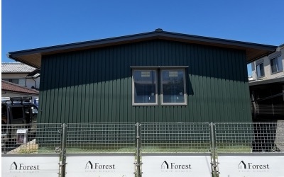 建物の上から下まで継ぎ目なく張られるガルバリウム鋼板の外壁は、見た目にも美しく、すっきりとした印象を与えます✨