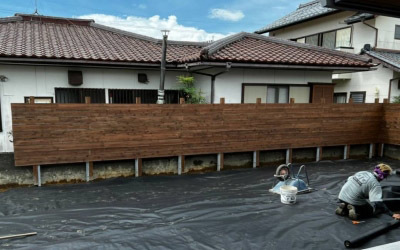 全体を洗い流して、同時に施工の最終チェックを行いました。