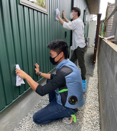 そして足場の解体前に、外部全体の「磨き」を行います。