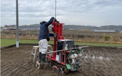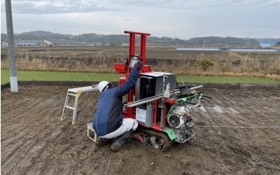 一点一点、ドリルを差し込み、表層だけではなく10m以上の深さまで調べていきます。