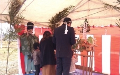2月吉日 A様邸にて地鎮祭を執り行いました。