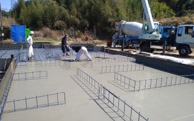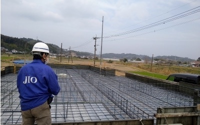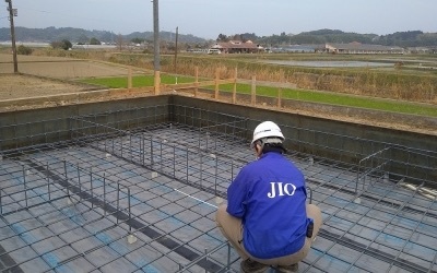 基礎鉄筋を組んだ後は、第三者機関JIOによる配筋検査が行われます。