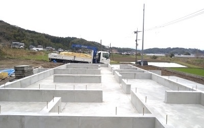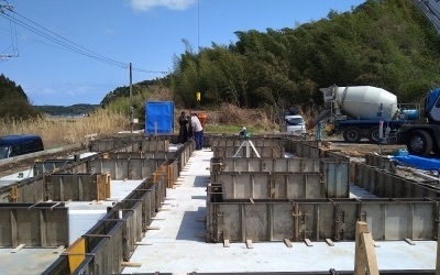 その後、型枠を設置し立上り部分のコンクリート打設(2回目)