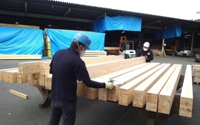 また、木材の製材工場では基礎工事と並行して構造材の番付け作業も完了しております!