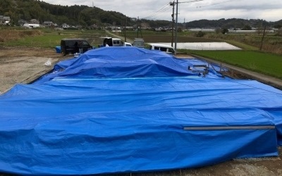 さらにその上から厚手のシートでラッピングをして2重の雨養生! これで気持ち的な安心度が全然違います(>_<)