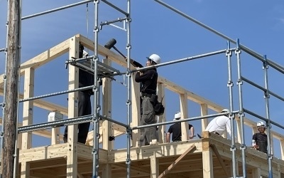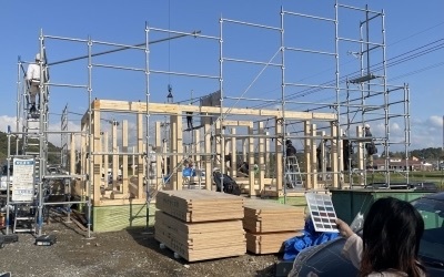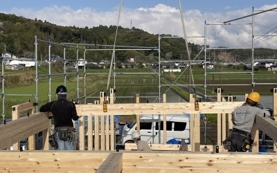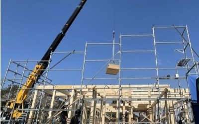 4月吉日、「Tow worlds」の現場にて建て方工事を行いました。