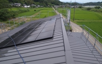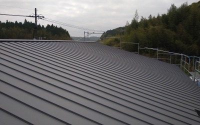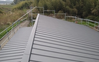 現場最上部から📷☆彡 ガルバリウム鋼板の屋根葺き完了状況です。