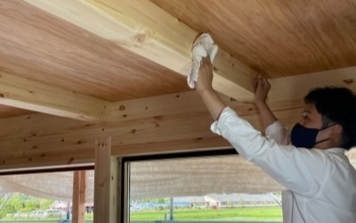 スタッフ全員で壁や床、外壁、柱の一本一本まで磨ききります。