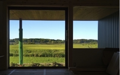 お施主様がソファに座ってくつろいでいる時、窓の外の景色と共に目に入ってくる柱や梁。