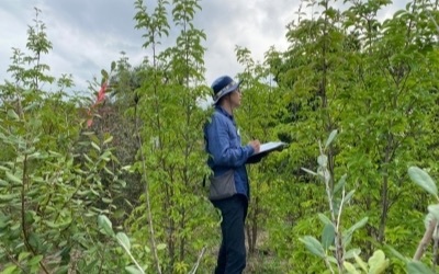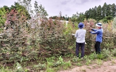 樹形や背の高さはもちろんのこと、時には触ってみて感触を確かめる。