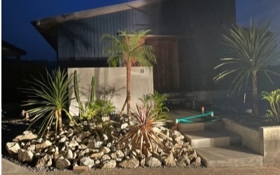 仕上げの石を敷き詰めて、植栽が完成しました。