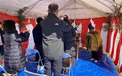 2月吉日、K様邸にて地鎮祭を執り行いました。