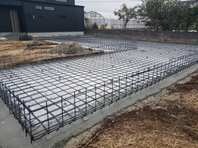 そして重要な配筋作業へ。 設計基準通り規程のピッチ・鉄筋径・かぶり厚・定着長さなど事前に確認を行います。 今回も完璧な配筋です。