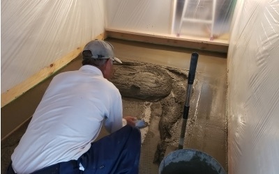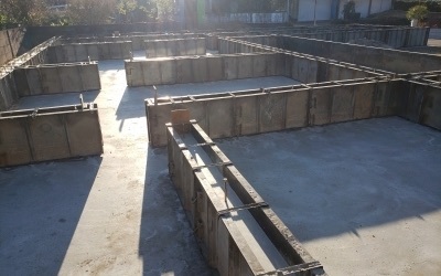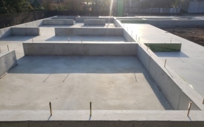 底盤につづき立ち上がりのコンクリート打設を行い十分な養生期間を置きます。