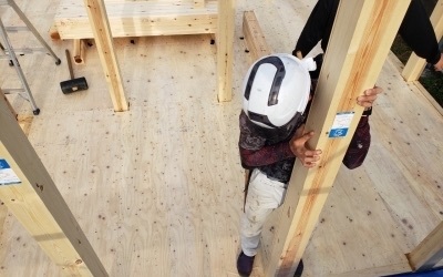 工事は2階部分まで進み、キリの良いところでちょうどお昼頃。 昼食休憩に入ります。
