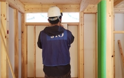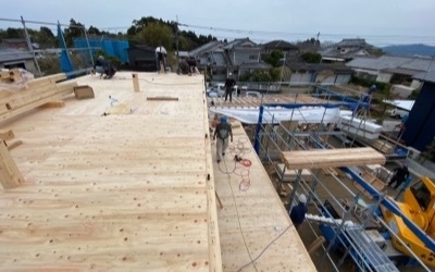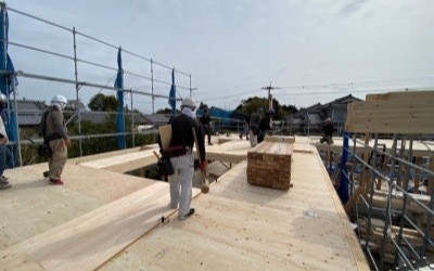 屋根工事・耐力面材の施工を終えると第三者機関による躯体検査へと進みます。