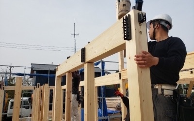 3月吉日、「Frame」の現場にて建て方工事を行いました。